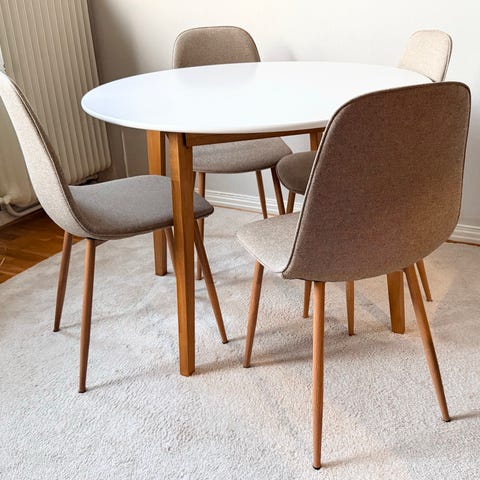 Säljer en stilren och modern matgrupp bestående av rund matbord och 4 stolar.