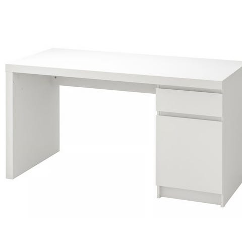 Bruna skrivbord och vitt matbord bortskänkes