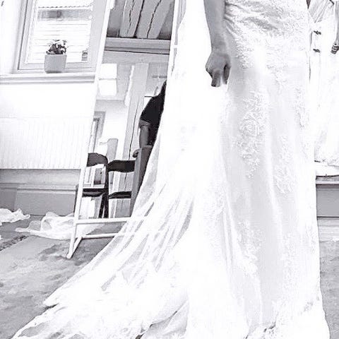Brudklänning med snyggt spets släp!