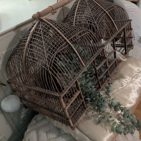 Vit gammal fågelbur