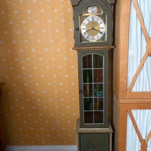 ⚠️ OBS: Klockan fungerar inte och säljs som reparationsobjekt eller prydnad. Perfekt för dig som kan urverk eller vill använda den som dekorativ möbel.