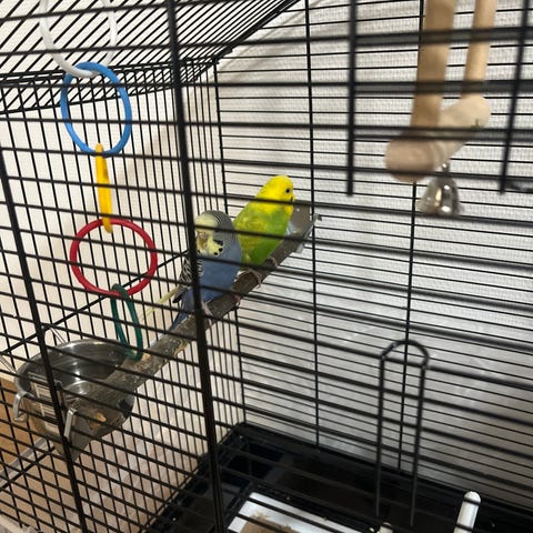 Två undulater på fem respektive två år. En hona och en hane.