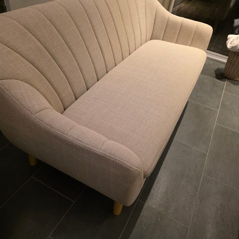Obs. Ena soffan har från produktion en liten defekt i nederkant, under tyget. Ingenting som stör funktionen eller som egentligen syns.