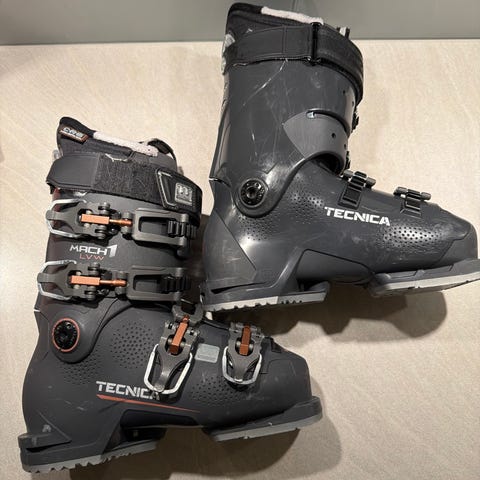 Scarpa skidpjäxor i färgerna vit, svart och orange. Pjäxorna är i storlek 42 och är avsedda för skidåkning. De har flera spännen för justering och stöd.