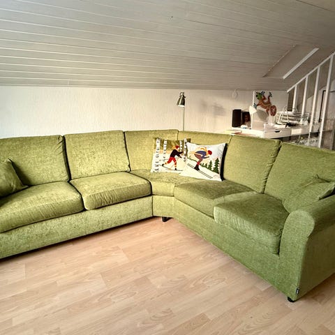 2 stk 2-sits-soffor med fot-puffar. 200cm långa, avtagbar klädsel.