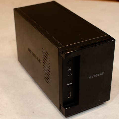 Netgear ReadyNAS 212 är en NAS-enhet med fyra hårddiskfack för lagring.