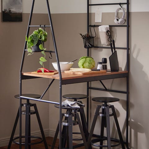 De ljusbruna stolarna är PINNTORP-stolar från IKEA, tillverkade i massivt trä med klassisk pinnstolsdesign.