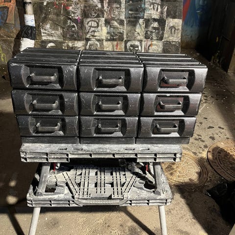 Sortimentsskåp med blåa plastbackar