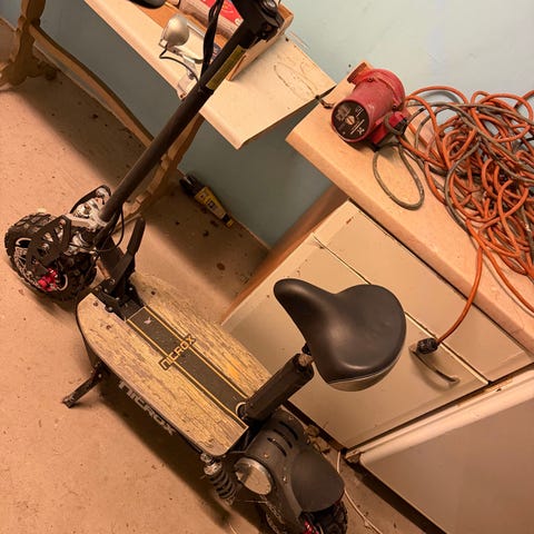 Scooter El-scooter i svart färg. Produkten är avsedd för persontransport och har en hopfällbar design för enkel förvaring och transport.