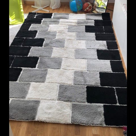 IKEA Blomman matta i beige färg med måtten 170x240 cm. Tillverkad av 100 % ren ny ull med silkeinslag och botten i bomull med latex. Mattan har ett blommönster och är avsedd för inomhusbruk. Skötselråd inkluderar försiktig kemtvätt och noggrann fläckborttagning med milt rengöringsmedel.