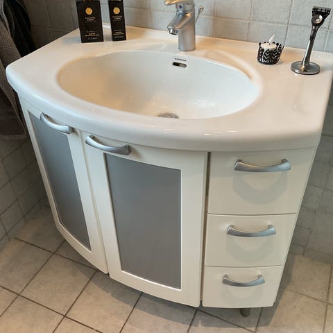 Spegel med hylla och blandare ingår