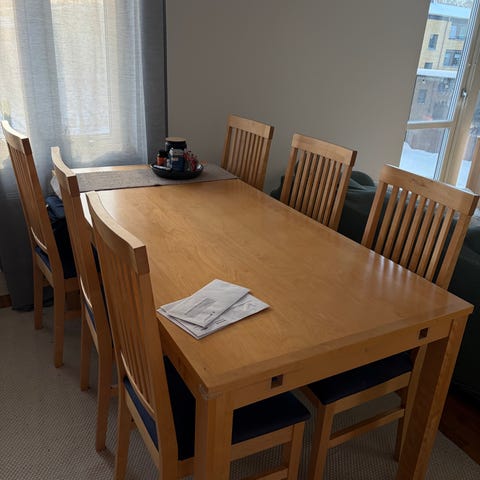 Stabilt bord. Stavlimmad skiva. Klädsel tvättbar