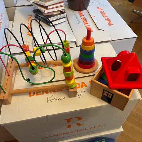Säljer ett paket med pedagogiska leksaker i mycket gott skick. Perfekta för att stimulera barns utveckling av motorik, koordination och kreativitet från ca 8 månader till 2 år.