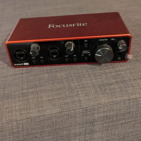 Säljer en Scarlett focusrite 2i2 3rd gen, kartong finns med. Den är i bra skick och säljes pga att jag inte har användning för den längre.