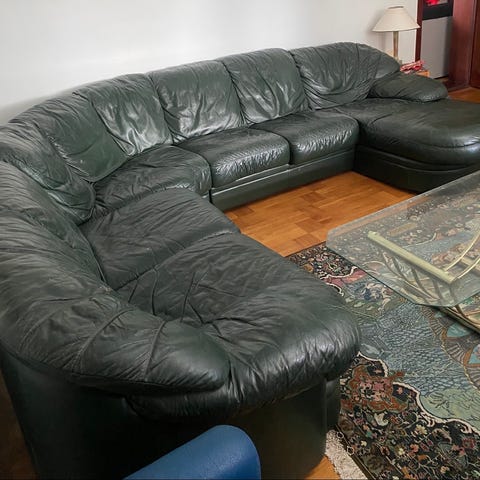 Svart skinnsoffa i mycket gott skick. Bortskänktes mot avhämtning . Soffan går att dela i två sektioner.