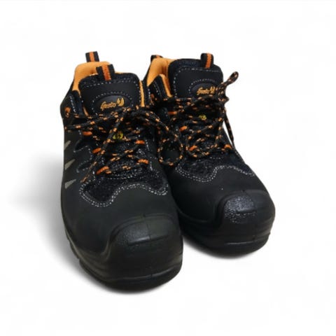 Luftiga och bekväma arbetsskor från Gesto i svart och orange. Perfekt för arbete som kräver skydd och komfort. Endast använda ett fåtal gånger.