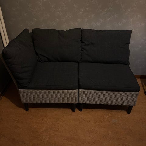Utemöbler i bra skick, tyvärr finns inte dynorna kvar men går att köpa andra tex på Rusta.