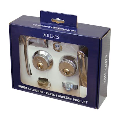 ASSA lås i mässing för ytterdörr. Komplett med låskista, nycklar och handtag