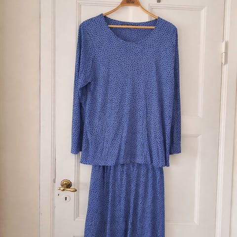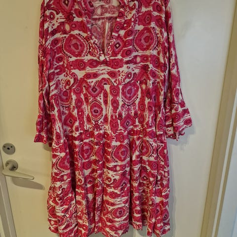 Fin, rostfärgad klänning med blommigt mönster från Gudrun Sjödén i skön, silkeslen viscose (lyocell). Fickor i sidorna och fina, vida ärmar. Endast 100 kr!