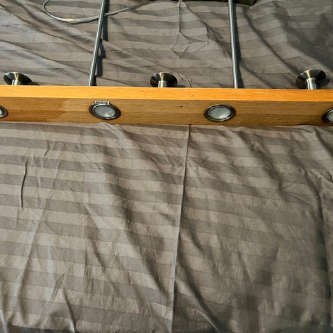 Bänkbelysning med halogenlampor 4 lister med 3 lampor vardera som kopplas ihop. Strömbrytare finns i varje list. Kan kopplas in med vanlig elkontakt (medföljer inte).