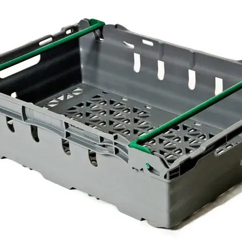 Trälåda för förvaring tillverkad i trä. Lådan är stor och robust, lämplig för industriellt eller lagerbruk. Den har en naturlig träfärg och är utformad för att skydda och lagra olika typer av material eller produkter. De är staplingsbara och rymmer cirka 6 kubik.