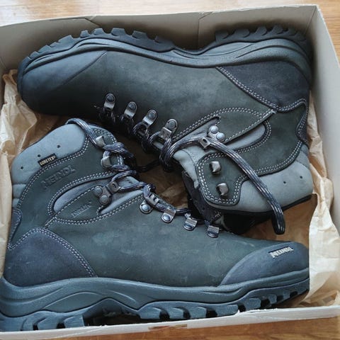 Nubuckläder och tillhör kategori B/C vilket gör den lämplig för vandringar i svår terräng och tung packning.