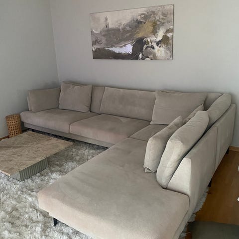 Soffa säljes tillsammans med tillhörande pall.
