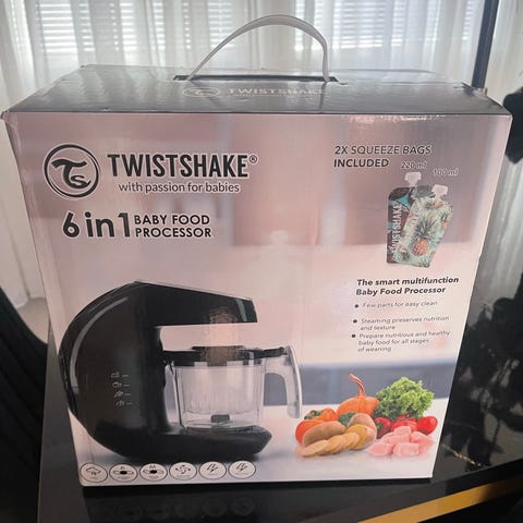 Säljer en Twistshake 6-i-1 babymatberedare i bra fungerande skick. Denna multifunktionella maskin är perfekt för ångkokning, mixning och tillagning av hälsosam hemlagad barnmat.