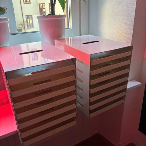 Lådan näst längst upp: 2 st organisatör- lådor.