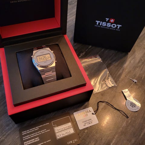 Tissot PR 100 Damklocka med boettstorlek på cirka 24 mm. Klockan har en kombination av rostfritt stål och guldfärgade detaljer. Utrustad med datumvisning och stållänk. Batteridriven med nytt batteri installerat.