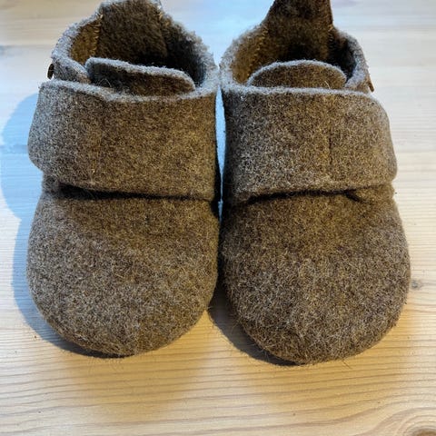 Bisgaard inneskor/tofflor. Riktigt varma och stabila med foder och innersula i ull. Kardborrebanden fungerar perfekt och skorna sitter kvar på fötterna och ger ett bra grepp.