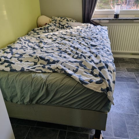 En 90 säng från JYSK. 3 månader gammal och i skicket som en ny, en madrass följs med på köpet. Nypris på sängen är 2500, säljs för 1000. Finns att hämta på Sveavägen 95 i Stockholm.
