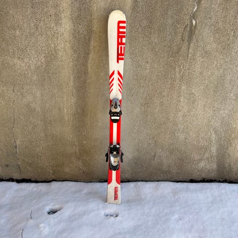 Slalom set barn: skidor 117 cm, stavar, pjäxor, hjälm.