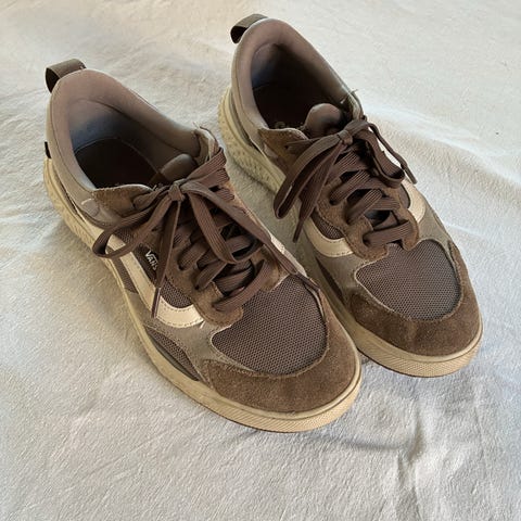Säljer ett par snygga och bekväma UGG-skor i brun/beige färg. Skorna är fodrade invändigt och passar perfekt för höst och mild vinter. Bekväma, varma och lätta att ta på.
