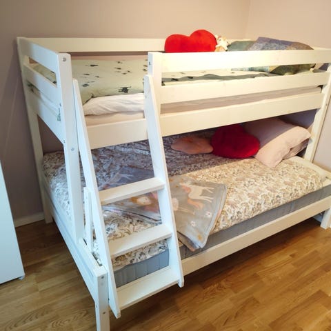 Familjesäng från Stalands möbler. Nederslafen mäter 120 cm och överslafen är 80 cm. Madrasser ingår och är i gott, fräscht skick.