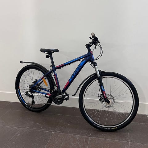 Trek Marlin 5 mountainbike för unisex med 29-tums hjul. Cykeln har en ram och komponenter anpassade för terrängkörning och är lämplig för olika typer av underlag.
