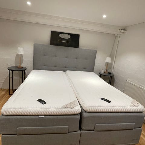 180 bred, 2st a' 90cm bottnar + madrasser (de vita bäddmadrasserna skänker vi med, om så önskas)