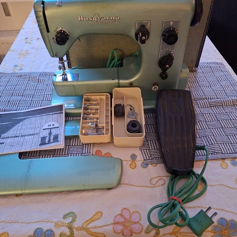 Husqvarna Viking 1100 symaskin med inbyggda stygnmönster som visas på maskinens panel och medföljande stygnmönsterkort. Fotpedal, bruksanvisning och de flesta tillbehören finns med. Köpte den begagnad och nyservad i höstas för 4895:-. Säljer vidare nu då jag ska köpa en ny maskin istället.