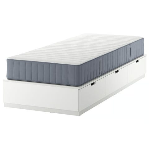Medföljer en Hövåg pocketresårmadrass och en Tussöy bäddmadrass (har haft madrasskydd, finns ev någon liten fläck men går att tvätta bort). Finns även ett par små repor på lådorna, se bilder.