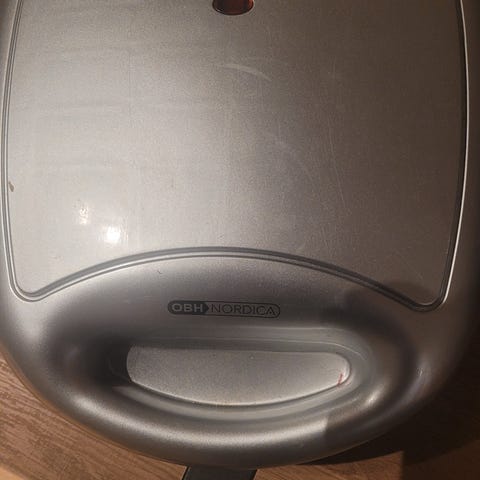 Sabor kontaktgrill i svart färg. Grillen har en platt grillyta med räfflade plåtar för matlagning. Den är försedd med handtag i metall och har en kompakt design som passar för enkel användning och förvaring. Produkten är elektrisk och avsedd för inomhusbruk.