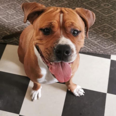 Vi känner alla stor sorg men pågrund av förändrade familjeförhållanden som vi idag behöver bestämma oss för att sälja vår älskade lilla bebis. Han är en blandras mellan amstaff/bully/rottweiler. Han är busig och älskar att leka, han älskar att ligga och mysa i soffan och sova i sängen och gosa. Han är rumsren och kan de flesta kommandon som sitt, ligg, vacker tass, dansa och hoppa. Vi har tonåringar här hemma vilket han trivs otroligt bra med och när han väl känner folk älskar han alla.