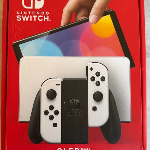 oöppnad Nintendo Switch OLED-modell spelkonsol med ny skärmteknik som ger förbättrad bildkvalitet. Konsolen är designad för flexibel spelupplevelse med handkontroller i olika färger.