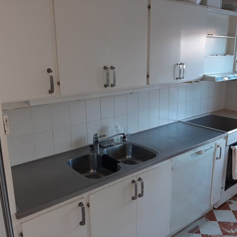 Kök till sommarstugan? Stommarna har många år på nacken, luckorna något nyare. Priset exkluderar vitvarorna. Stommar, luckor, lådor, knoppar/handtag, laminatbänkskiva samt dubbel diskho i rostfritt stål ingår. Ni står för rivning och bortförsel.