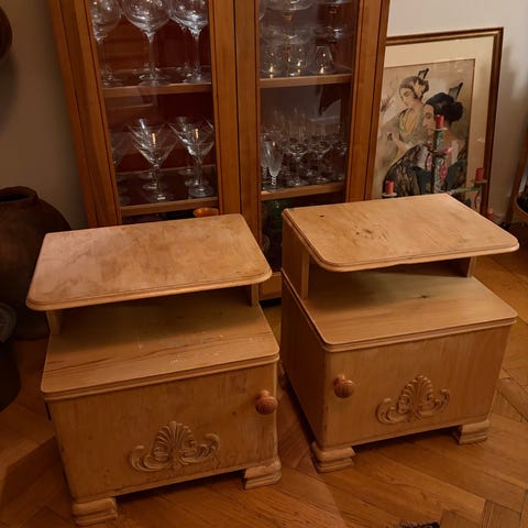 Gamla ljusgrå sängbord 2st