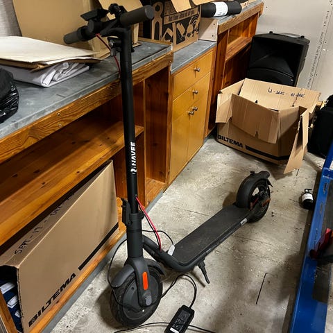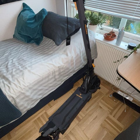 Navee Electric Scooter elscooter i svart färg. Elektrisk sparkcykel med hopfällbar design, lämplig för pendling och kortare resor. Utrustad med handbroms och LED-lampor för säkerhet vid användning.