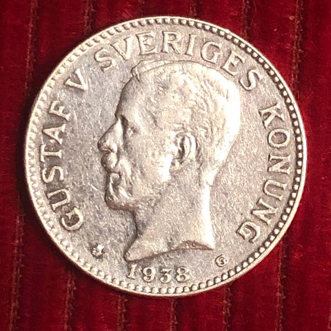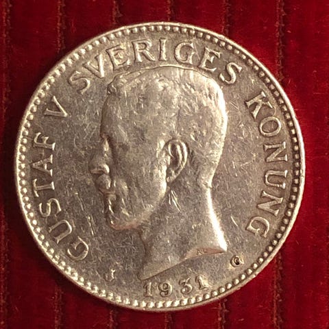 Sveriges Kung Gustav V 2 Kronor Silvermynt 1935