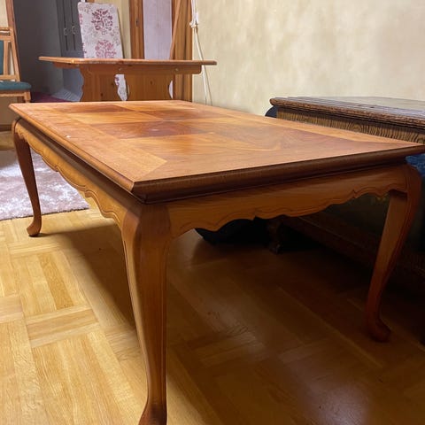 2 st sidobord, längd 56 cm, bredd 38 cm, höjd 53 cm. Vid köp av alla tre 2000kr Annars 1300kr för de stora soffbordet.