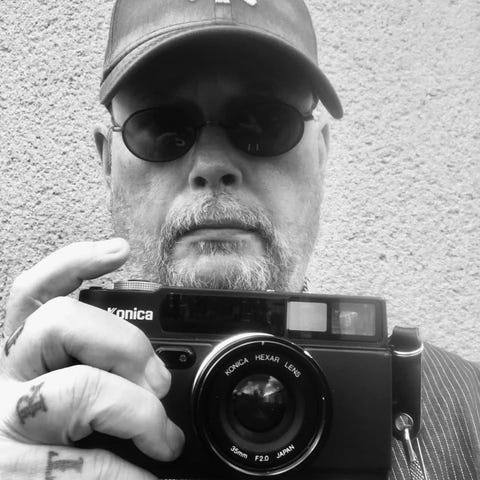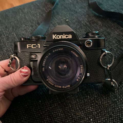 Konica Kamerahus analog kamera i svart färg. Kamerahuset är avsett för analog fotografering och har en klassisk design. Medföljer ett hexanon ar 135mm f2.5 objektiv