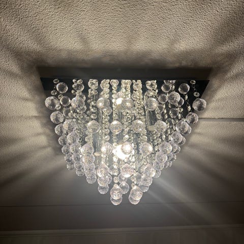 När lampan är tänd bryts LED-ljuset i glaset och skapar ett levande, glittrande och nästan magiskt ljusspel ✨ som är svårt att fånga på foto.