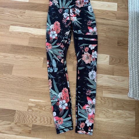 Stronger träningstights för kvinnor i storlek S med camouflagemönster. Tillverkade av 82% polyester och 18% elastan, vilket ger stretch och komfort vid träning.